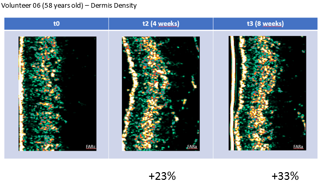 Nach 8 Wochen eine durchschnittliche Zunahme der Hautdichte um 33 %.