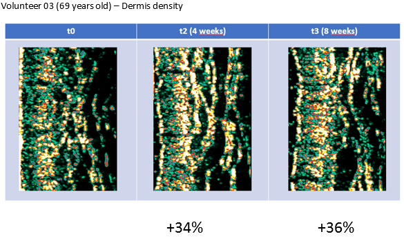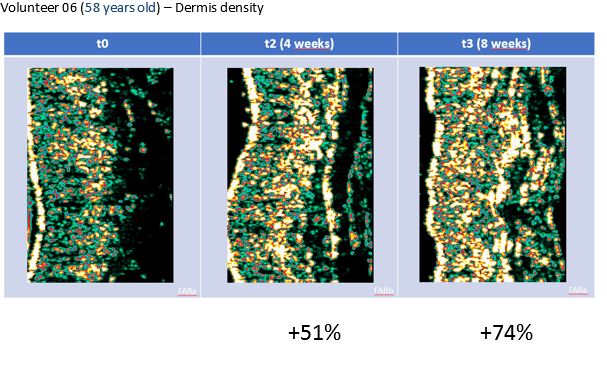 Nach 4 Wochen eine durchschnittliche Zunahme der Hautdichte um 23%.