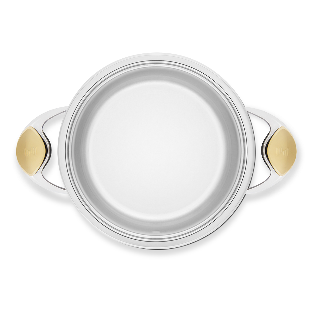 Unter 2000 Tonnen Druck mit dem Topfkörper verschmolzen – für maximale Stabilität und Effizienz auf allen Herdarten.