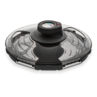 Der Syncro-Clik®-Deckel wird mithilfe eines Verriegelungsmechanismus fixiert, durch den der Deckel nicht abgehoben werden kann, bis der interne Druck auf einen sicheren Pegel gesunken ist. Eine visuelle Druckanzeige auf der Temperaturregelung zeigt klar an, wann der Topf unter Druck steht. Sie zeigt zudem den Druckabfall an, wenn der Topf von der Wärmequelle genommen wird und abkühlt. Um zusätzliche Sicherheit zu gewährleisten, verfügt der Deckel über eine Dichtungsöffnung, durch die der Dampf im Falle eines übermäßigen Druckaufbaus oder bei einer Verstopfung der Hauptdruckventile sicher abgelassen wird.