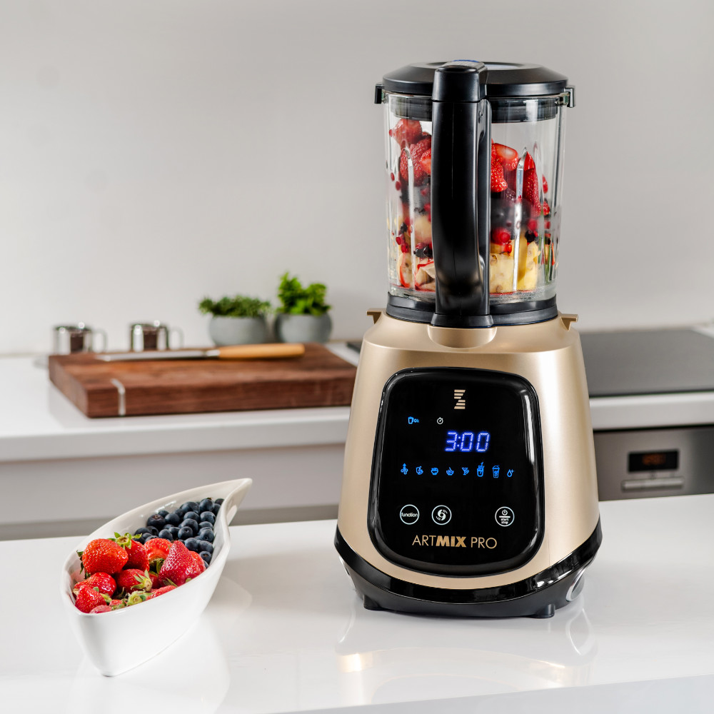 Entdecken Sie den neuen, unverzichtbaren Küchenhelden, der das Essen in einem einzigen Behälter mischt, püriert und kocht - ArtMix Pro - ein superstarker, aber superleiser, automatisierter Mixer in Profikoch-Qualität.