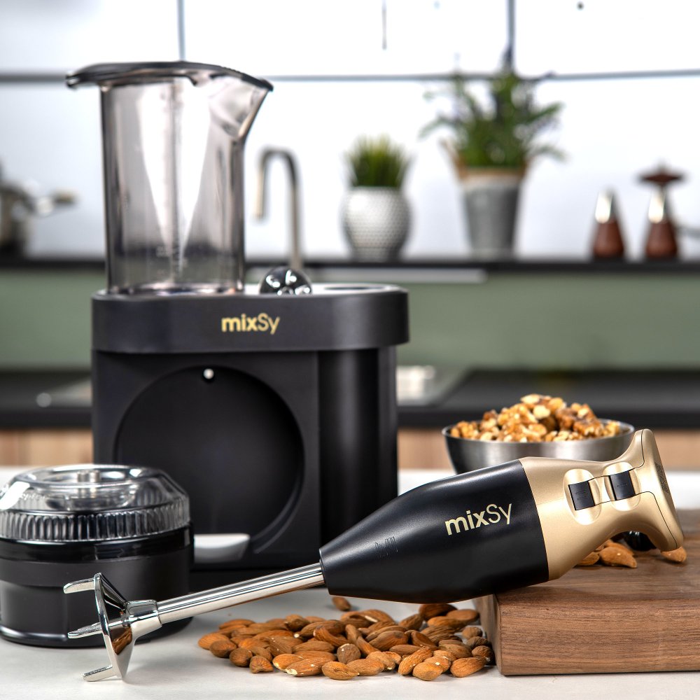 MixSy® besticht durch außergewöhnliche Funktionen und Merkmale wie beispielsweise einen enorm leistungsstarken Motor, zwei Geschwindigkeiten und vier Aufsatzklingen, mit denen Sie jede Zutat mühelos für Ihr Gericht vorbereiten können. Der Fuß des Gerätes besteht aus hochwertigem strapazierfähigem Edelstahl und gestattet dadurch auch das Vermischen heißer Zutaten direkt im Topf. Das praktische Küchentalent ist besonders leise, belastbar, leicht und benutzerfreundlich - ein wahrer Segen für jeden Hobbykoch. Mit mixSy® können Sie alle Arten von Lebensmitteln auf verschiedene Weise verarbeiten und benötigen keinerlei andere Geräte. Das leichte und kompakte Gerät verfügt über einen platzsparenden und handlichen Ständer, sodass Sie es auch einfach auf der Arbeitsplatte stehen lassen können. So sparen Sie Platz in Ihren Schränken.