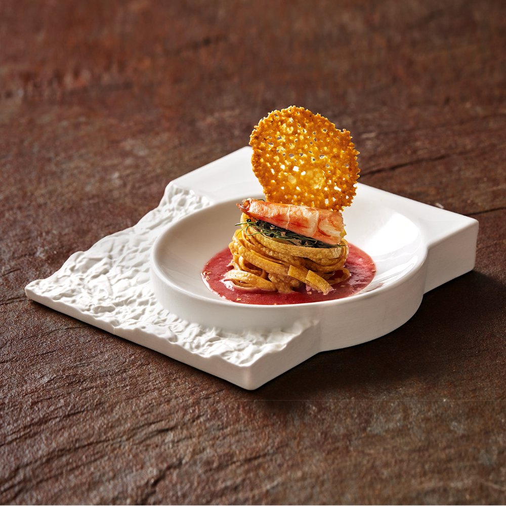 Dieser elegante Teller bietet die perfekte Unterlage, um Ihre kulinarischen Meisterwerke zu präsentieren.