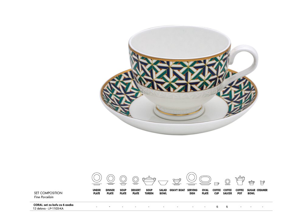 Eine perfekte Mischung aus Tradition und Moderne wird in ein bemerkenswertes Kunstwerk verwandelt - unsere Coral-Kollektion. Dieses Set besteht aus 6 Kaffeetassen und 6 Untertassen