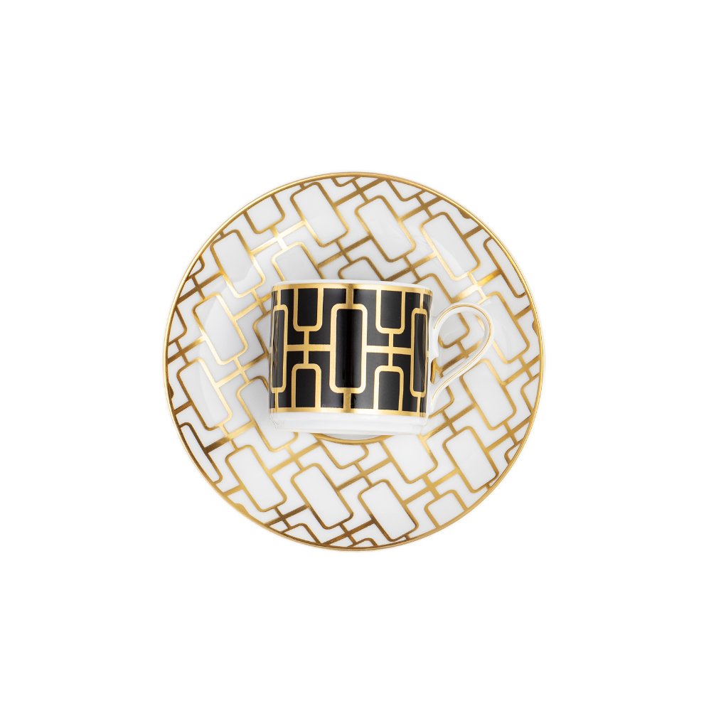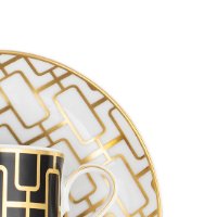 Genießen Sie Ihren Espresso in vollen Zügen mit der eleganten Regina Gold Espressotasse. Diese zarte Tasse aus feinstem Bone China ist mit einem kunstvoll gestalteten Golddekor verziert, das an ein filigranes Netz erinnert. Das zarte Porzellan und das glänzende Gold bilden eine harmonische Kombination, die jeden Schluck zu einem besonderen Erlebnis macht.