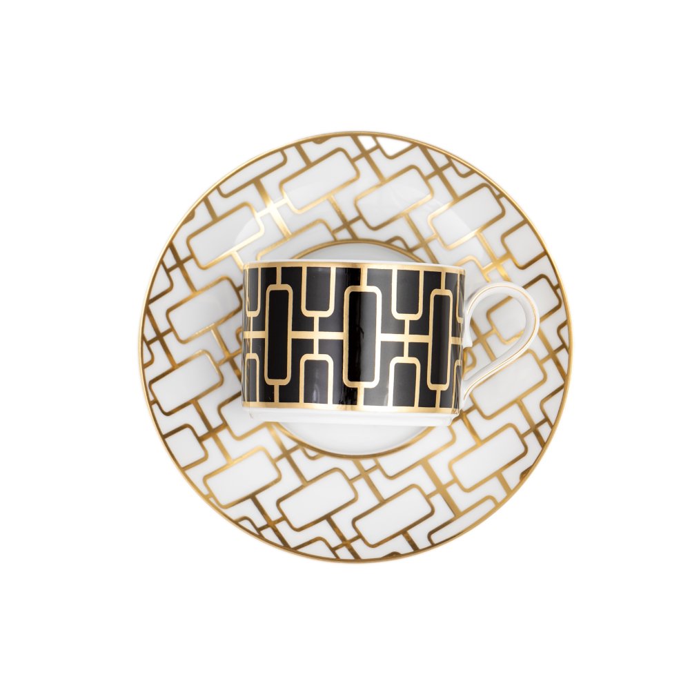 Starten Sie Ihren Tag mit einem Hauch von Luxus. Die Regina Gold Tee-/Kaffeetasse aus feinstem Bone China ist mit einem kunstvoll gestalteten Golddekor verziert, das an ein filigranes Netz erinnert. Das zarte Porzellan und das glänzende Gold bilden eine harmonische Kombination, die jeden Schluck zu einem besonderen Erlebnis macht.