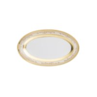 Erleben Sie königlichen Genuss mit der Royal Gold Creme Ovalplatte. Diese 24 cm lange Platte aus feinstem Bone China ist ein Meisterwerk der Porzellankunst. Das sanfte Cremeweiß des Porzellans bildet einen edlen Kontrast zu den dezenten Goldakzenten, die der Platte eine luxuriöse Note verleihen.